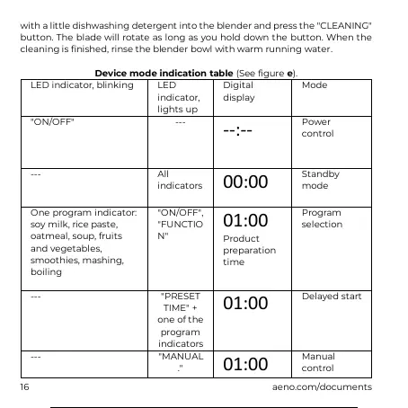 Device mode indication table (See figure e).
