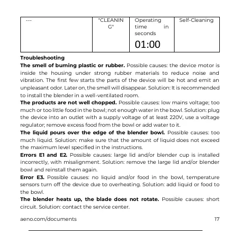Errors E1 and E2. Possible causes: large lid and/or blender cup is installed