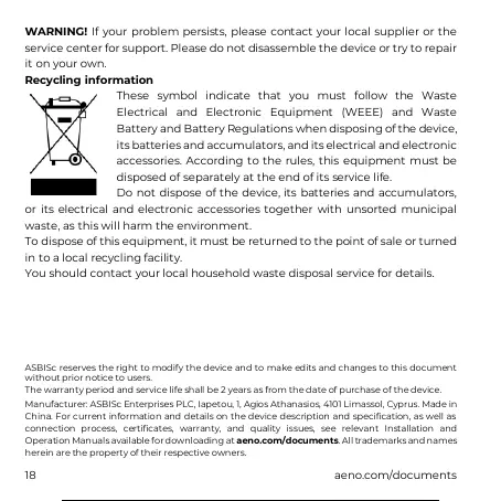 ASBISc reserves the right to modify the device and to make edits and changes to this document