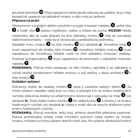 Před prvním a každým dalším použitím umyjte mixovací nádobu , velké víko