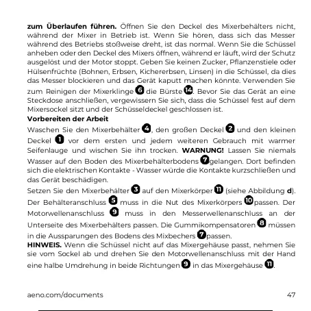 zum Überlaufen führen. Öffnen Sie den Deckel des Mixerbehälters nicht,