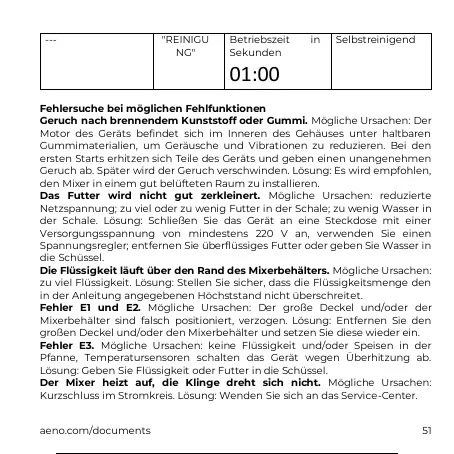 Fehler E3. Mögliche Ursachen: keine Flüssigkeit und/oder Speisen in der