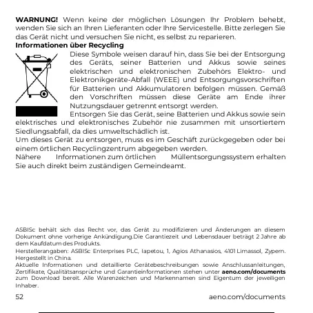 ASBISc behält sich das Recht vor, das Gerät zu modifizieren und Änderungen an diesem
