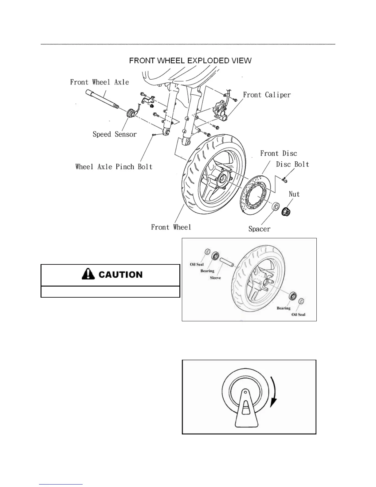3. Remove front wheel axle, nut, speed sensor and spacer
