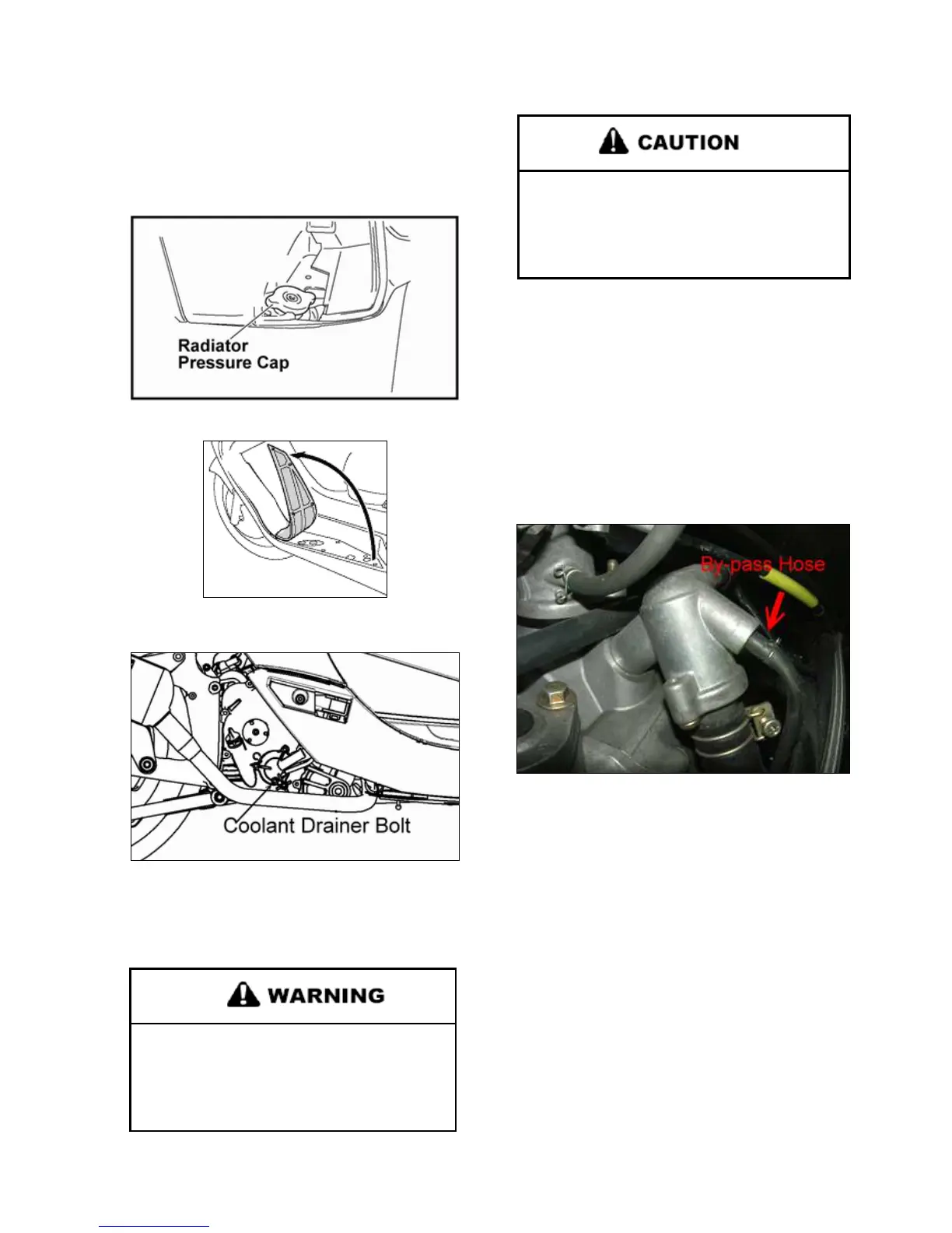 2. Remove radiator pressure cap, which located under handlebar.