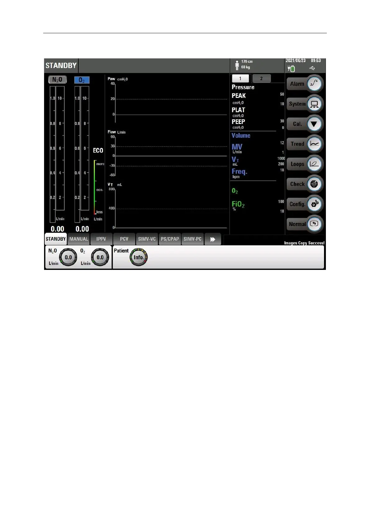 Aeonmed Aeon8800A - The Interface Layout Without CO and Anaesthesia Gas Monitoring