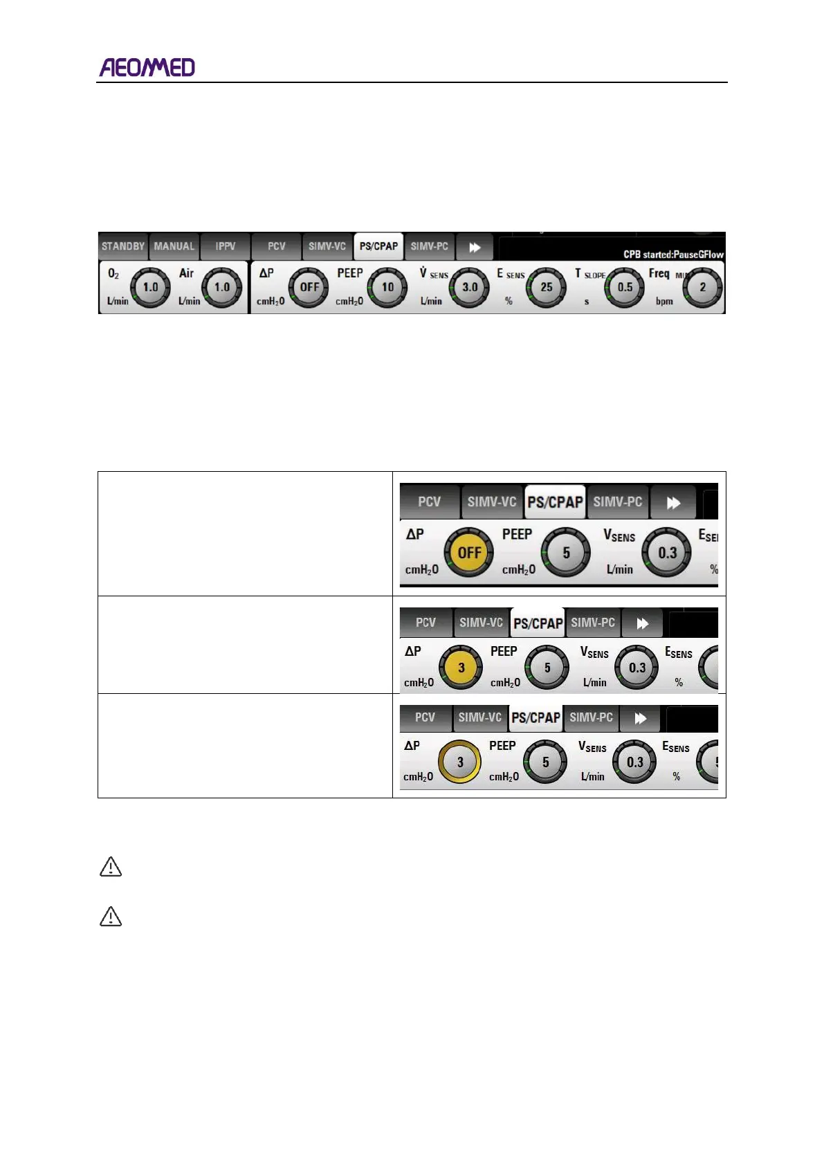 For example:Select PS/CPAP mode, click PS/CPAP mode button, and the button will turn to the
