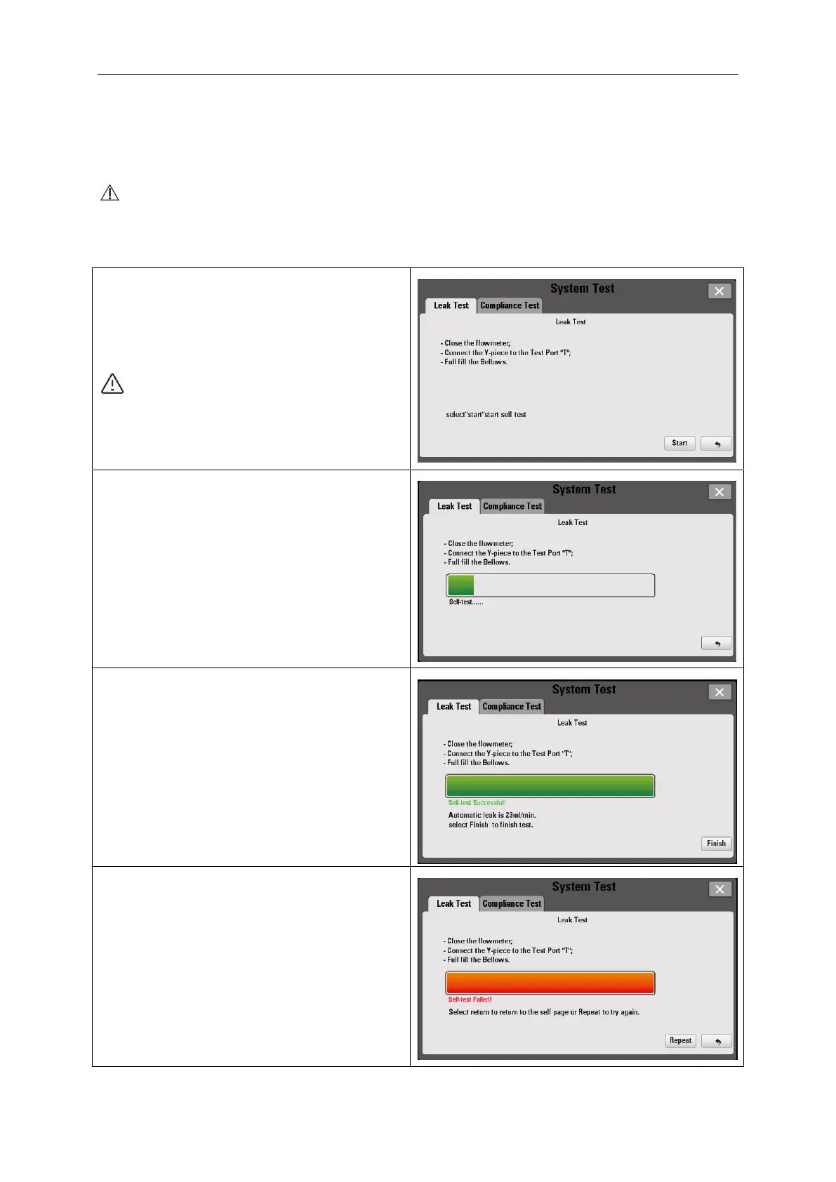 CAUTION: Leak Test can only be