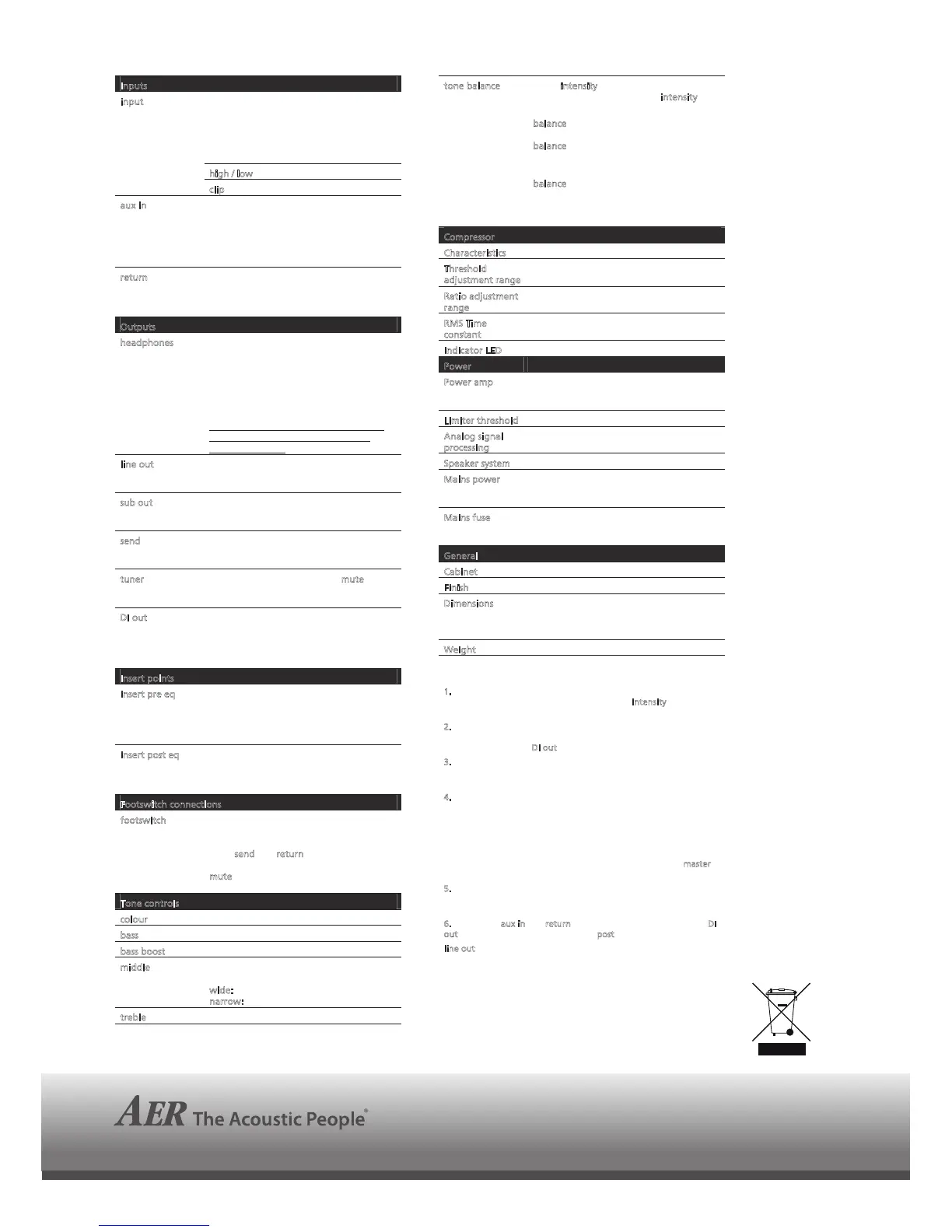Sensitivity: 2 x 170 mV (–15 dBV)