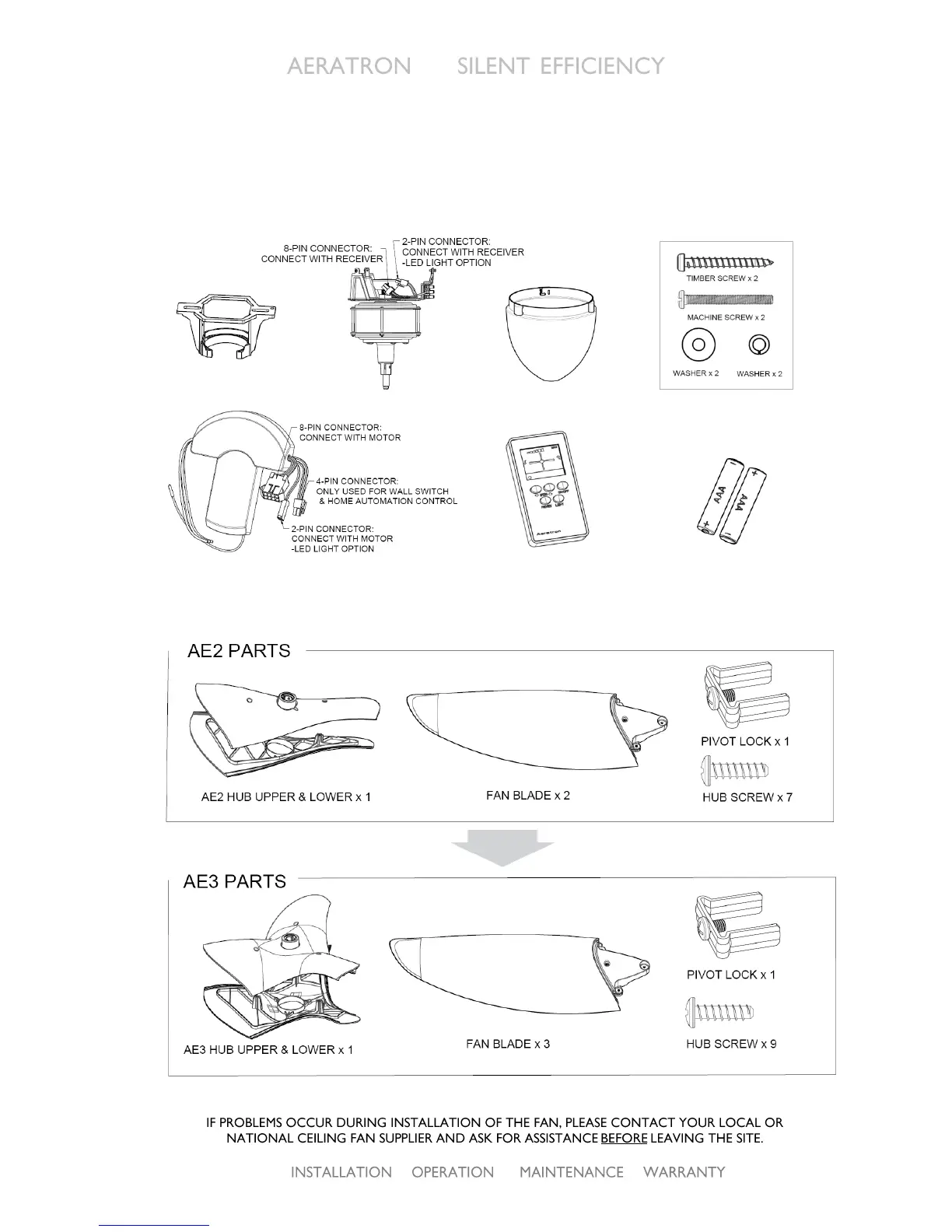 Unpack your fan and check the contents. Do not discard the carton. If warranty replacement or repair