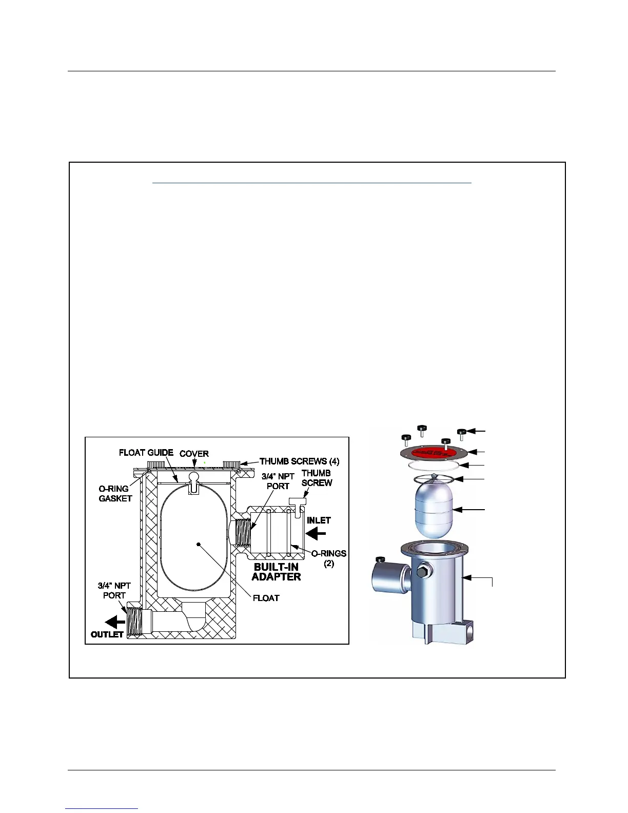 Figure 7-10: External Condensate Trap: Cutaway and Exploded Views