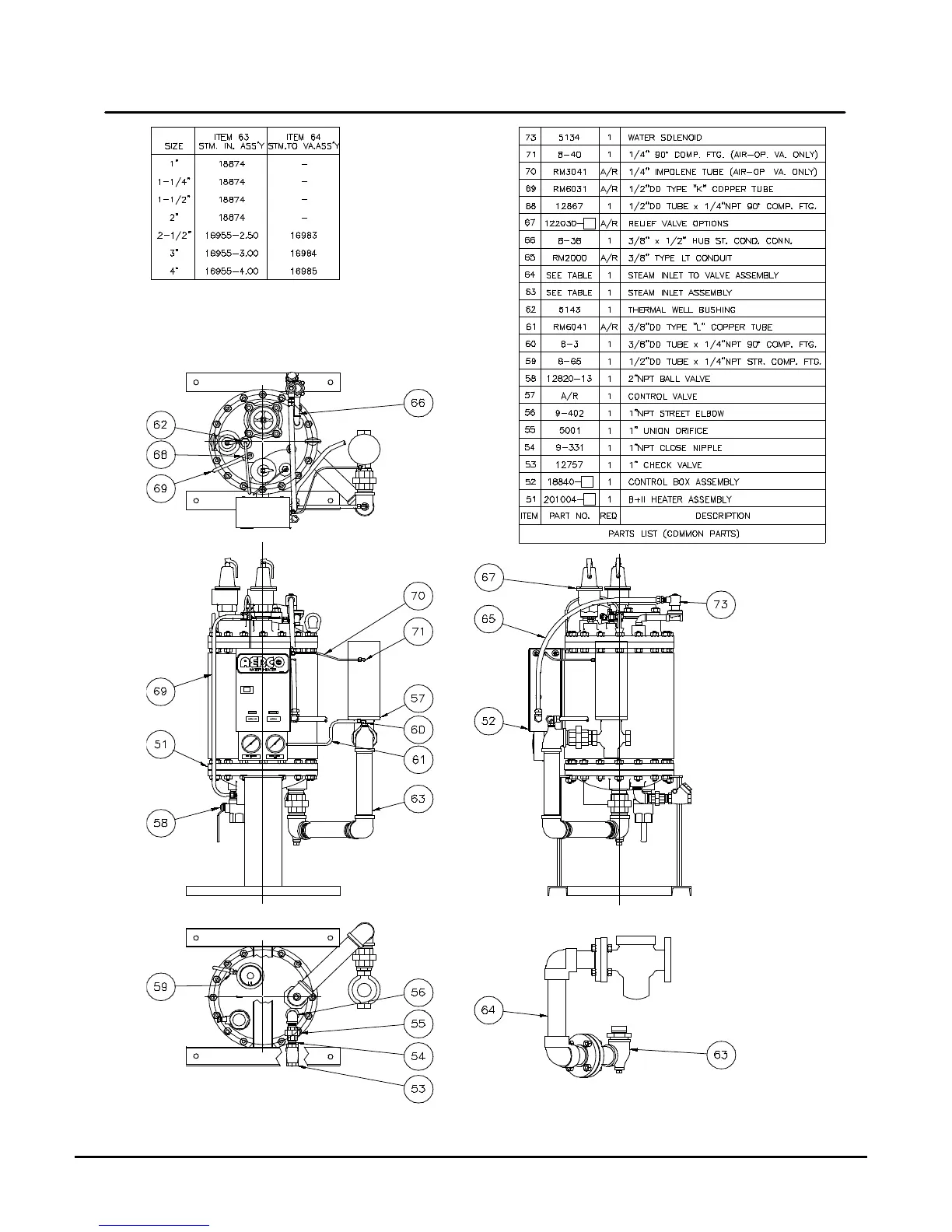 Figure 21 AERCO Model B+II Water Heater w/Pneumatic Valve - Assembly and Parts List