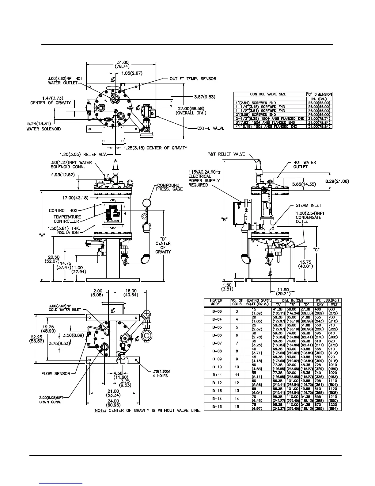 Figure 1b – Dimensions for AERCO Helitherm Heat Exchanger (Packaged Water Heater),