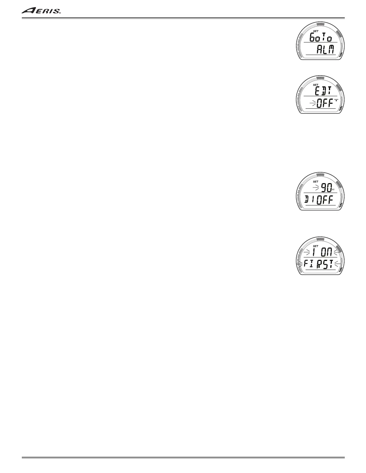 • S (< 2 sec) to save the selection and access Set Depth Alarm 2 if OFF or ON is saved, or flash the Depth digits if SET is