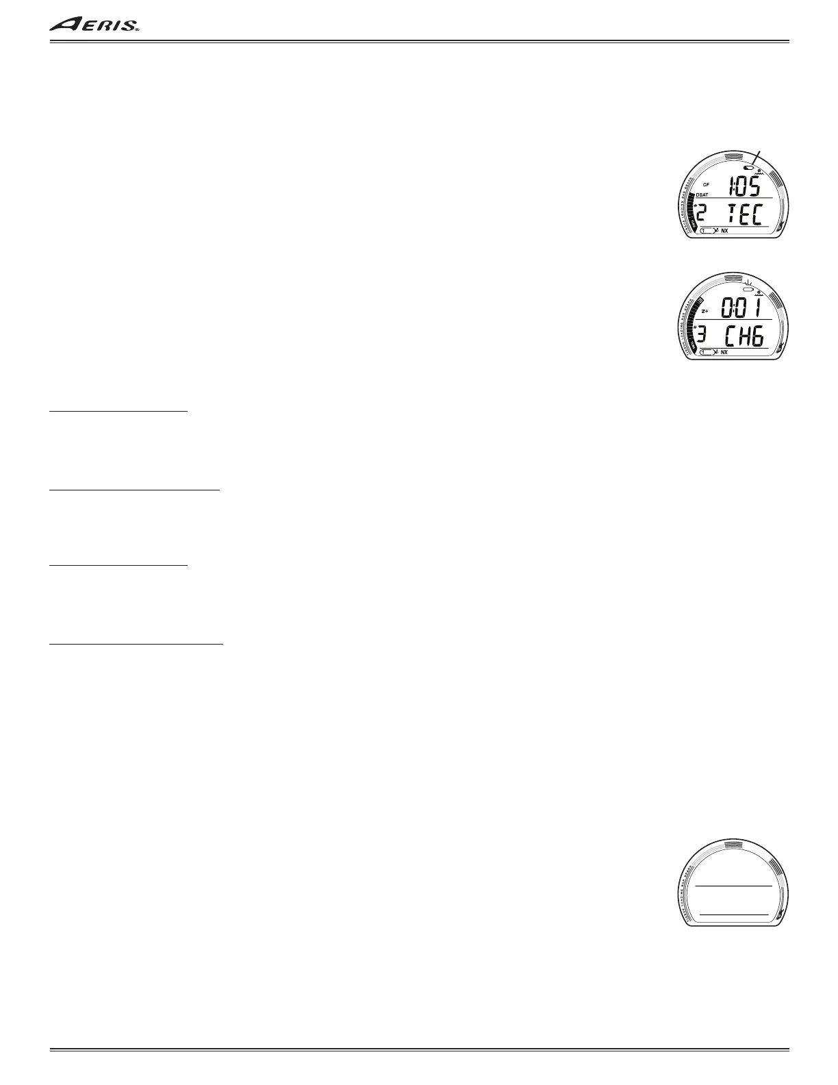 • Upon surfacing, the Battery icon (shell only) flashes and the graphics CHG and BAT alternate for 10 minutes, then the unit