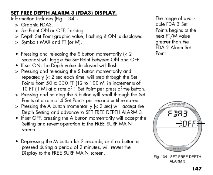 SET FREE DEPTH ALARM 3 (FDA3) DISPLAY,