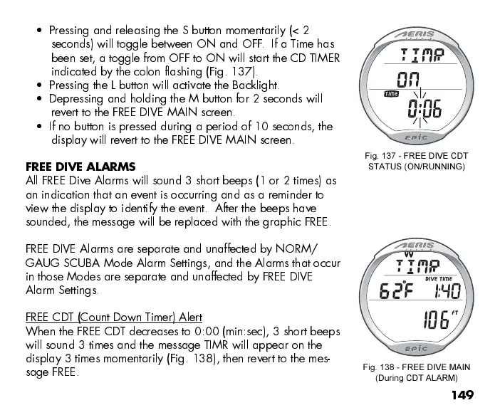 FREE DIVE Alarms are separate and unaffected by NORM/