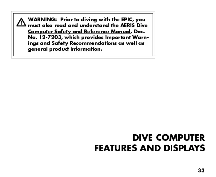 WARNING: Prior to diving with the EPIC, you