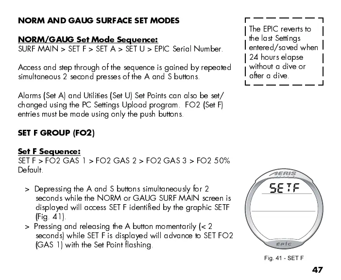 seconds) while SET F is displayed will advance to SET FO2