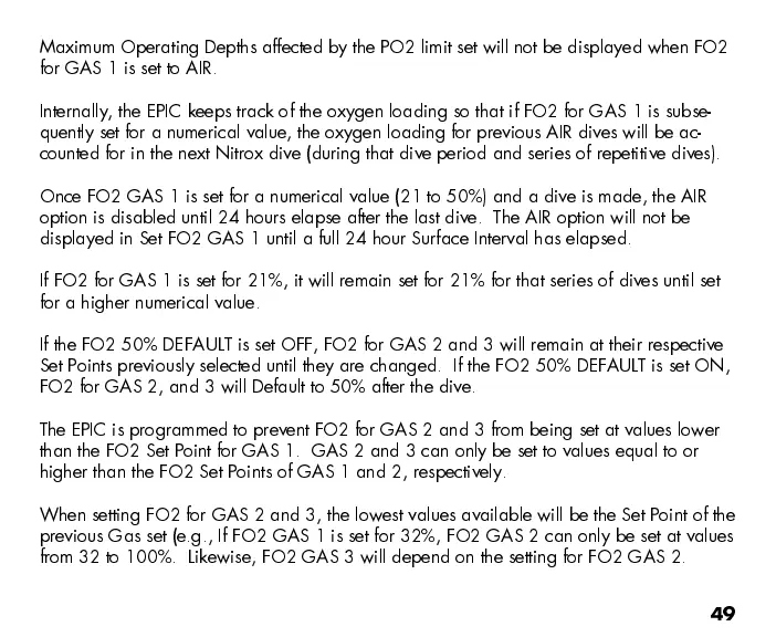 previous Gas set (e.g., If FO2 GAS 1 is set for 32%, FO2 GAS 2 can only be set at values