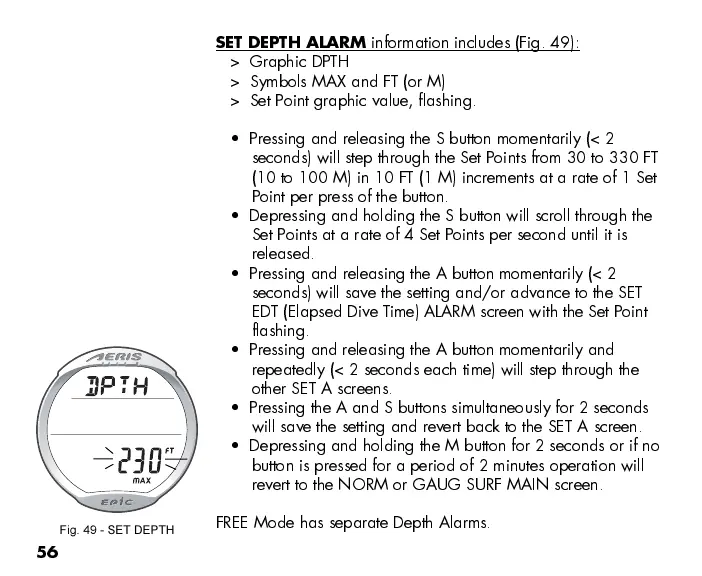EDT (Elapsed Dive T ime) ALARM screen with the Set Point