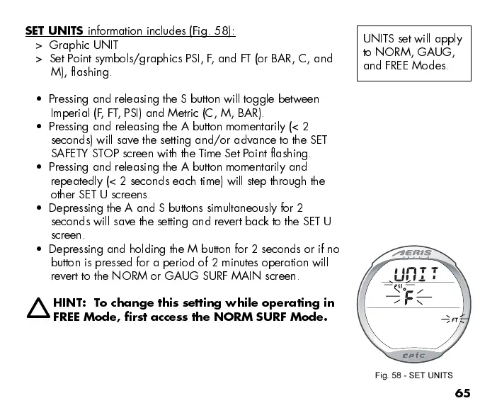 Imperial (F, FT, PSI) and Metric (C, M, BAR).