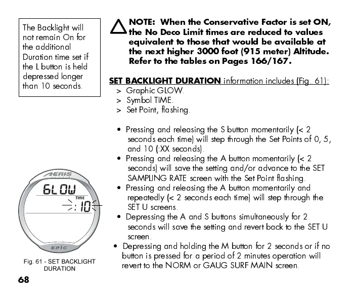 SET BACKLIGHT DURATION