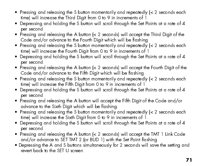 and/or advance to SET TMT 2 (or BUD 1) with the Set Point flashing.
