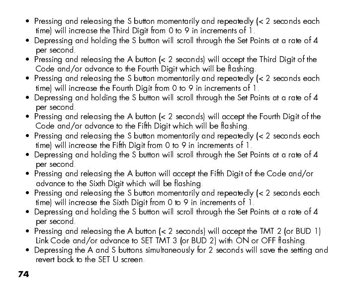 Depressing and holding the S button will scroll through the Set Points at a rate of 4