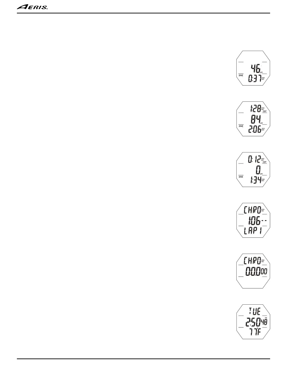 When the Chrono is displayed, it will remain on the display until M (< 2 sec) to replace it with the Dive Main.