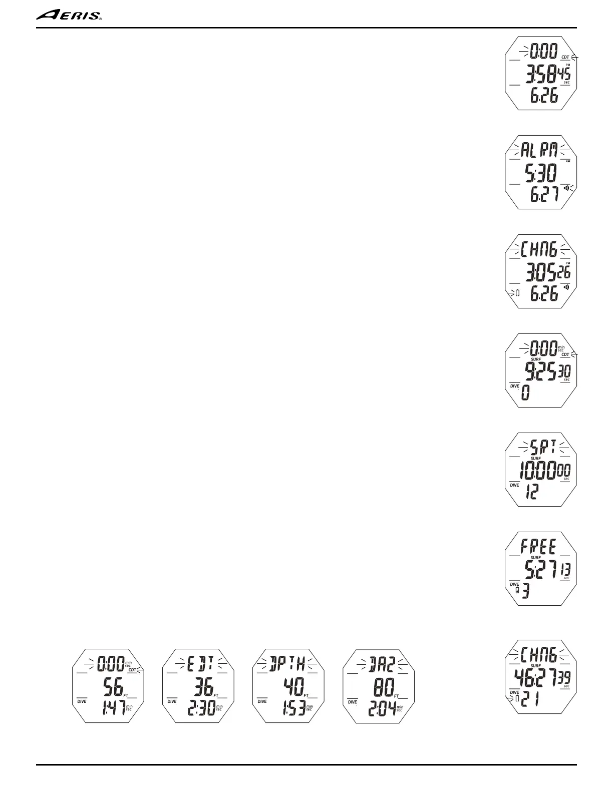flash on the Dive Main, in place of the CDT if in use. The alarm will sound even for descents made after ascents to shallower depths