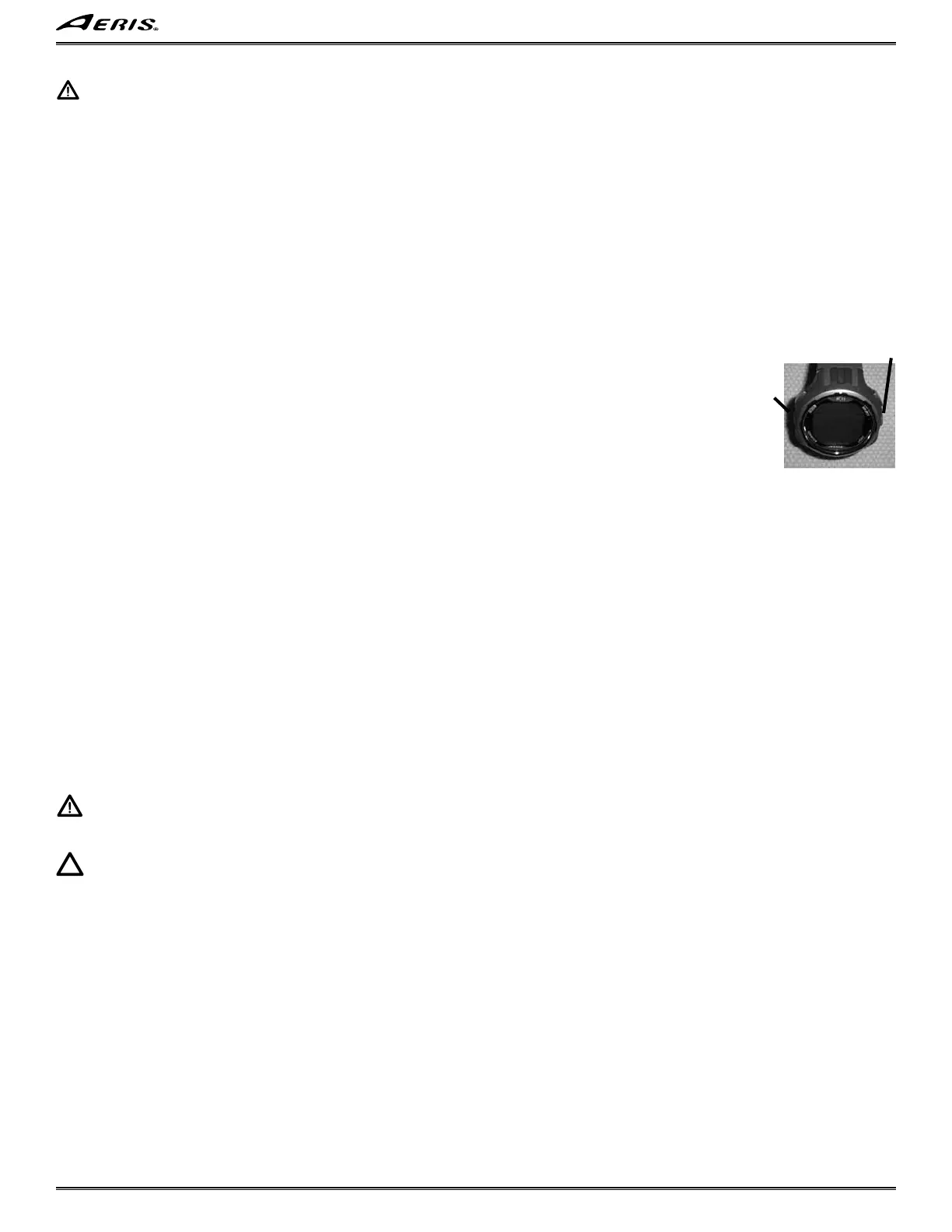Your F11 should be inspected annually by an Authorized AERIS Dealer who will perform a factory prescribed function check and inspection for dam-