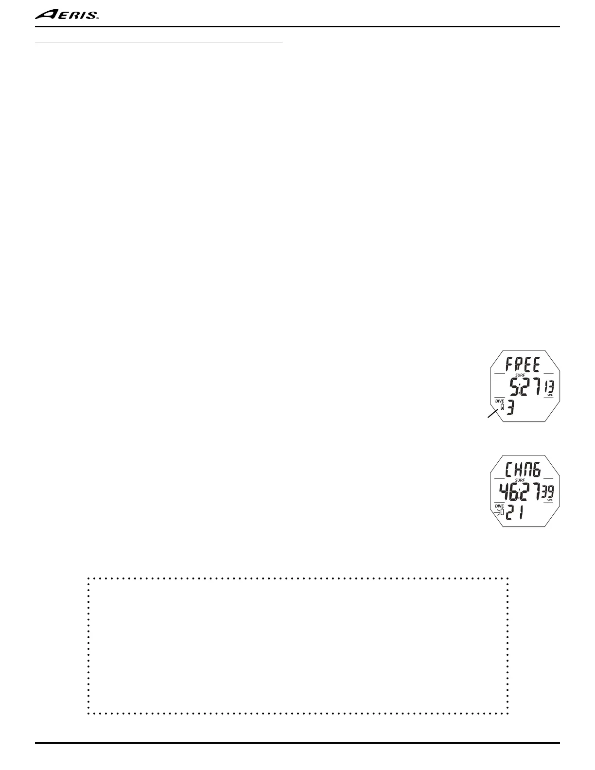 • Low Battery Warning/Alarm conditions are not displayed during Dive Modes.
