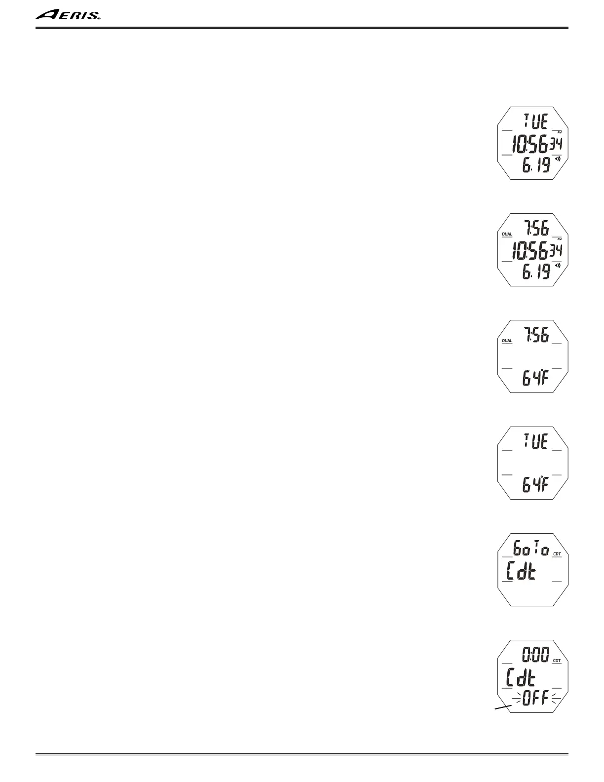 Upon accessing FREE mode or starting a dive, Watch CDT operation will be terminated and the time reset to the previous setting.