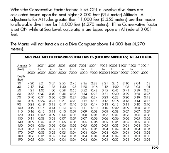 to allowable dive times for 14,000 feet (4,270 meters). If the Conservative Factor
