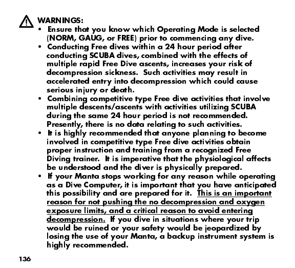 (NORM, GAUG, or FREE) prior to commencing any dive.