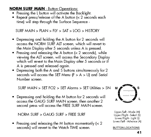 access the NORM SURF ALT screen, which will revert to