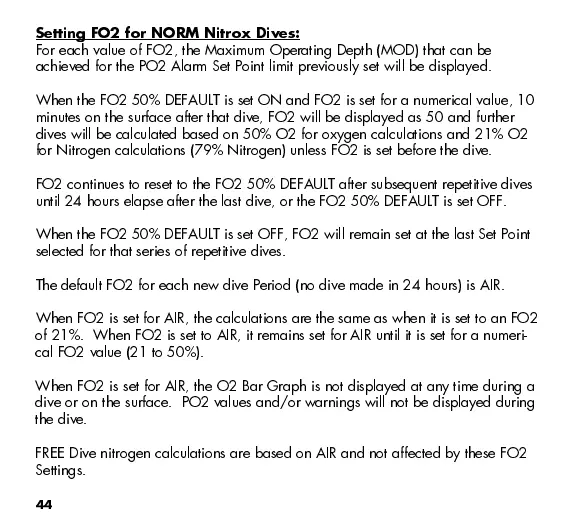 until 24 hours elapse after the last dive, or the FO2 50% DEFAULT is set OFF.