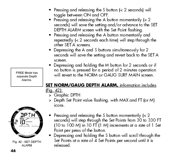 > Depth Set Point value flashing, with MAX and FT (or M)