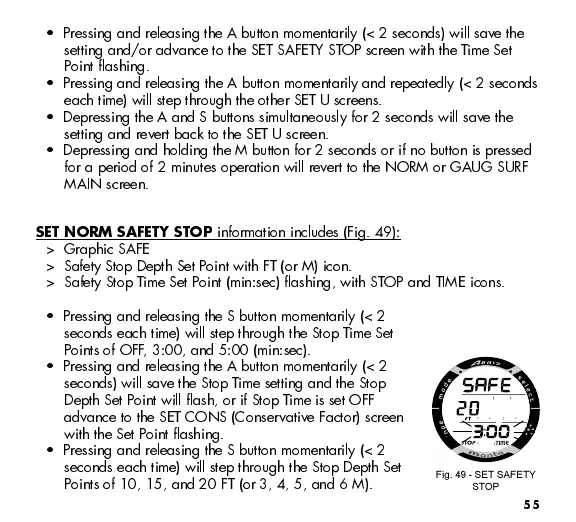 setting and/or advance to the SET SAFETY STOP screen with the Time Set