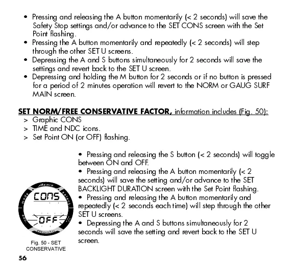 for a period of 2 minutes operation will revert to the NORM or GAUG SURF