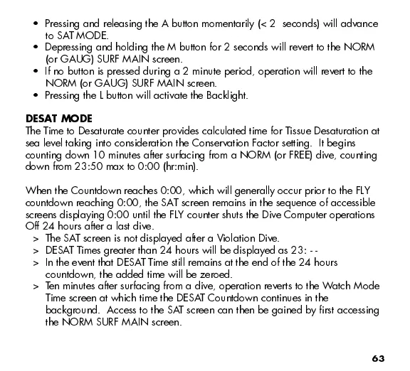 The Time to Desaturate counter provides calculated time for Tissue Desaturation at