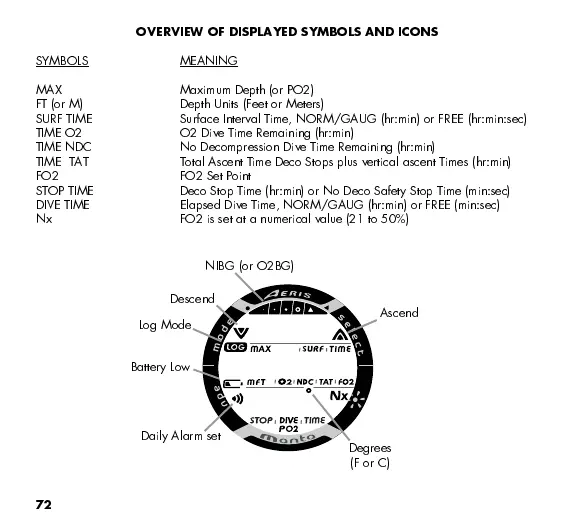 OVERVIEW OF DISPLAYED SYMBOLS AND ICONS