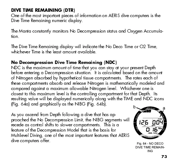 The Dive Time Remaining display will indicate the No Deco Time or O2 Time,