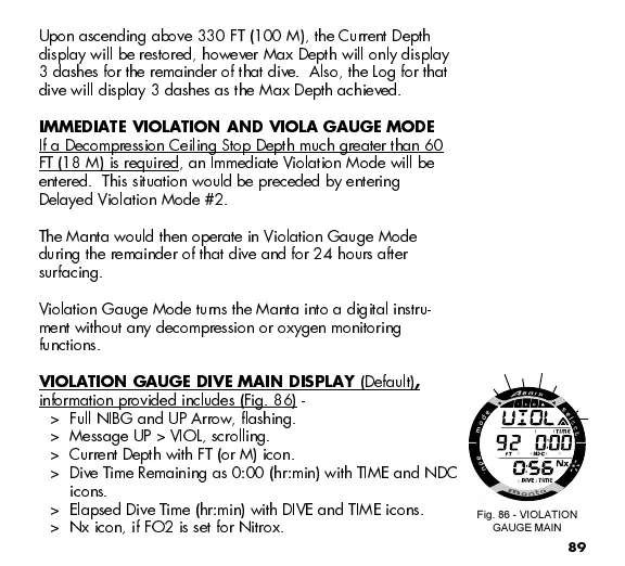 VIOLATION GAUGE DIVE MAIN DISPLAY