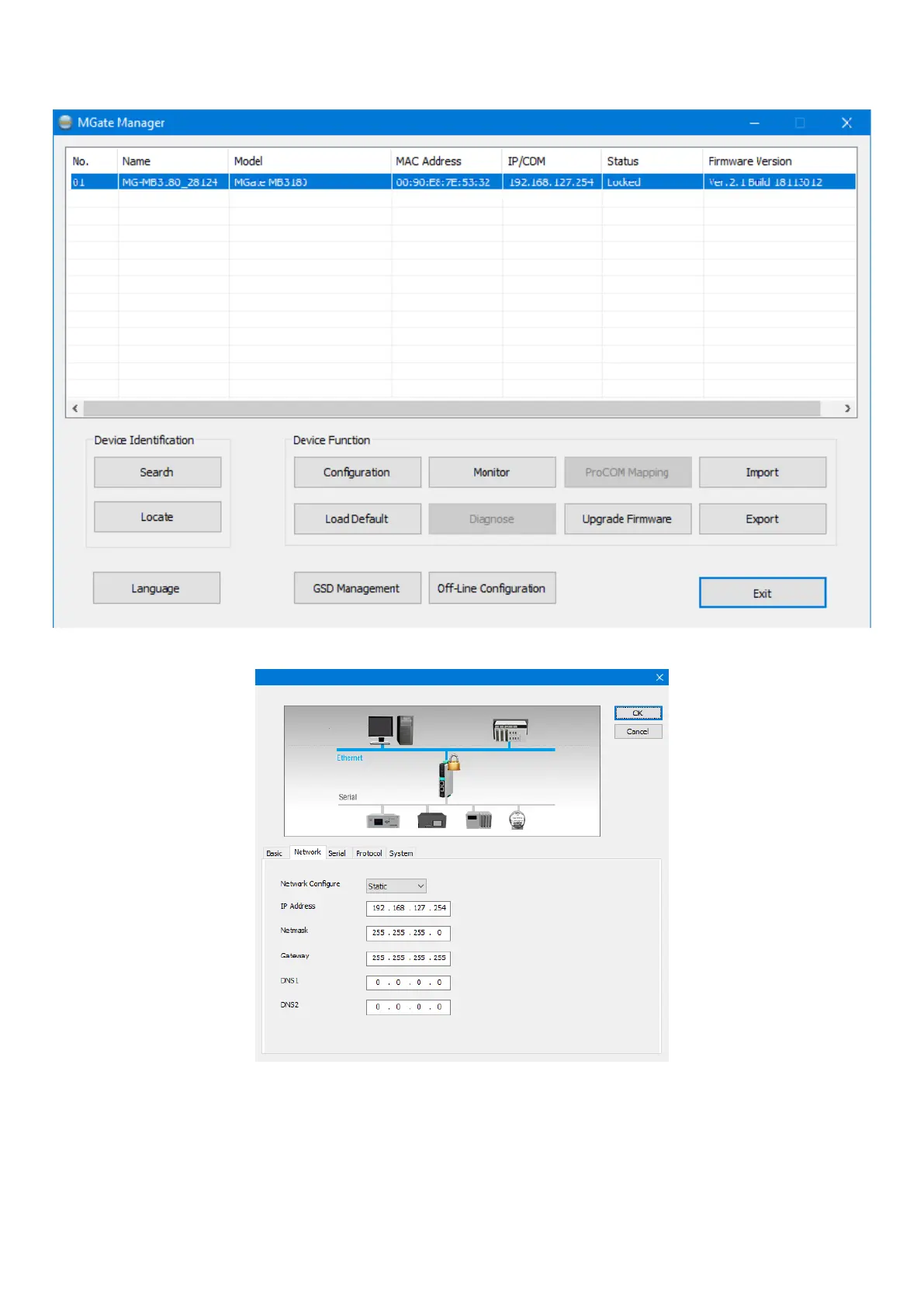 5. die Vorrichtung auswählen, an der die Konguration (Kommunikationsmodus, Adresse Modbus des angeschlossenen Slave, IP-Adresse des Umrichters usw.), die für den korrekten Betrieb erforderlich
