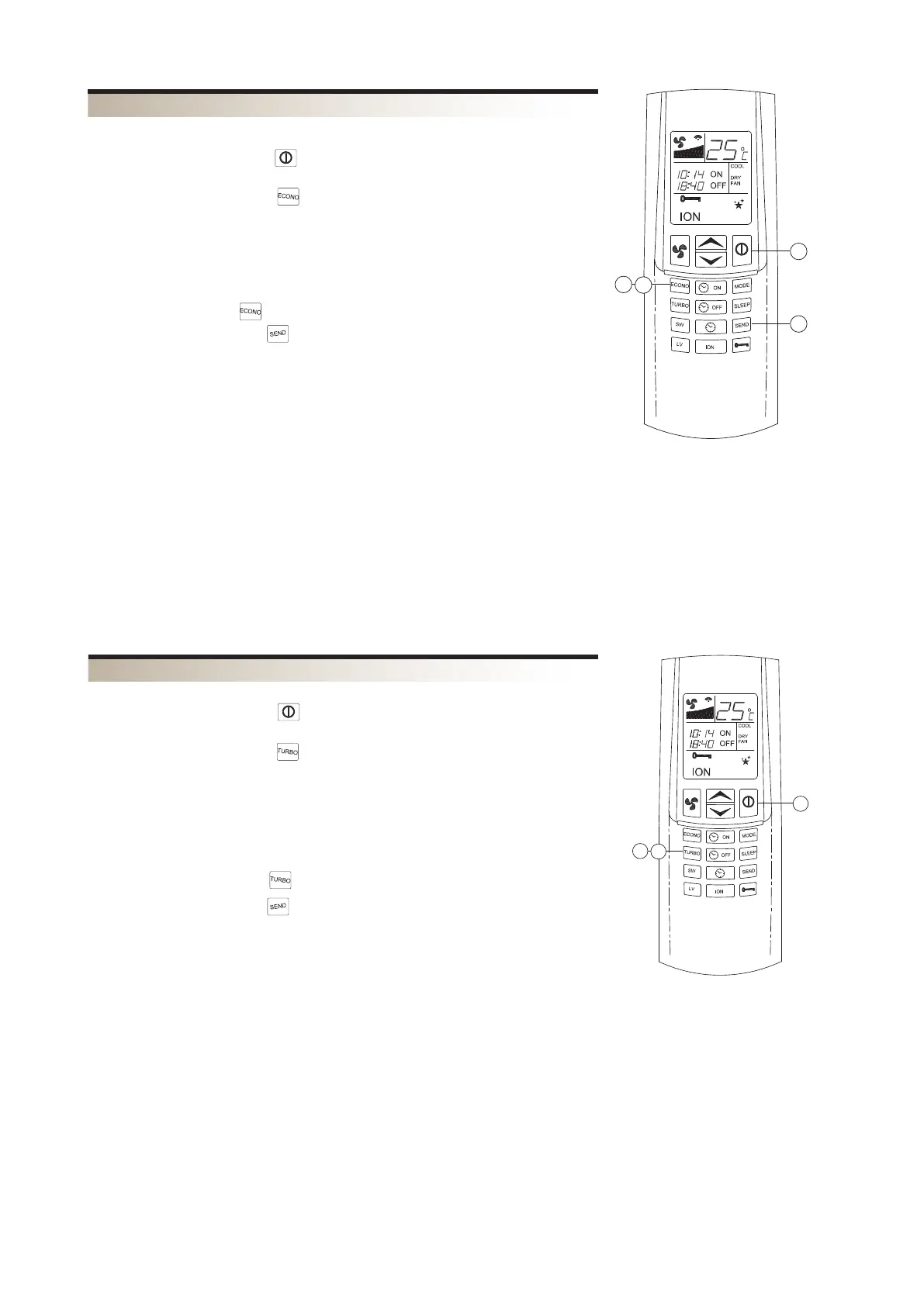 The ECONO icon appears on the display and the temperature set point and fan speed