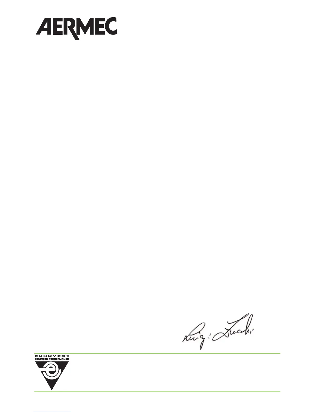 AERMEC S.p.A. participa en el programa de certificación EUROVENT. Sus equipos aparecen en el directorio de productos certificados EUROVENT.