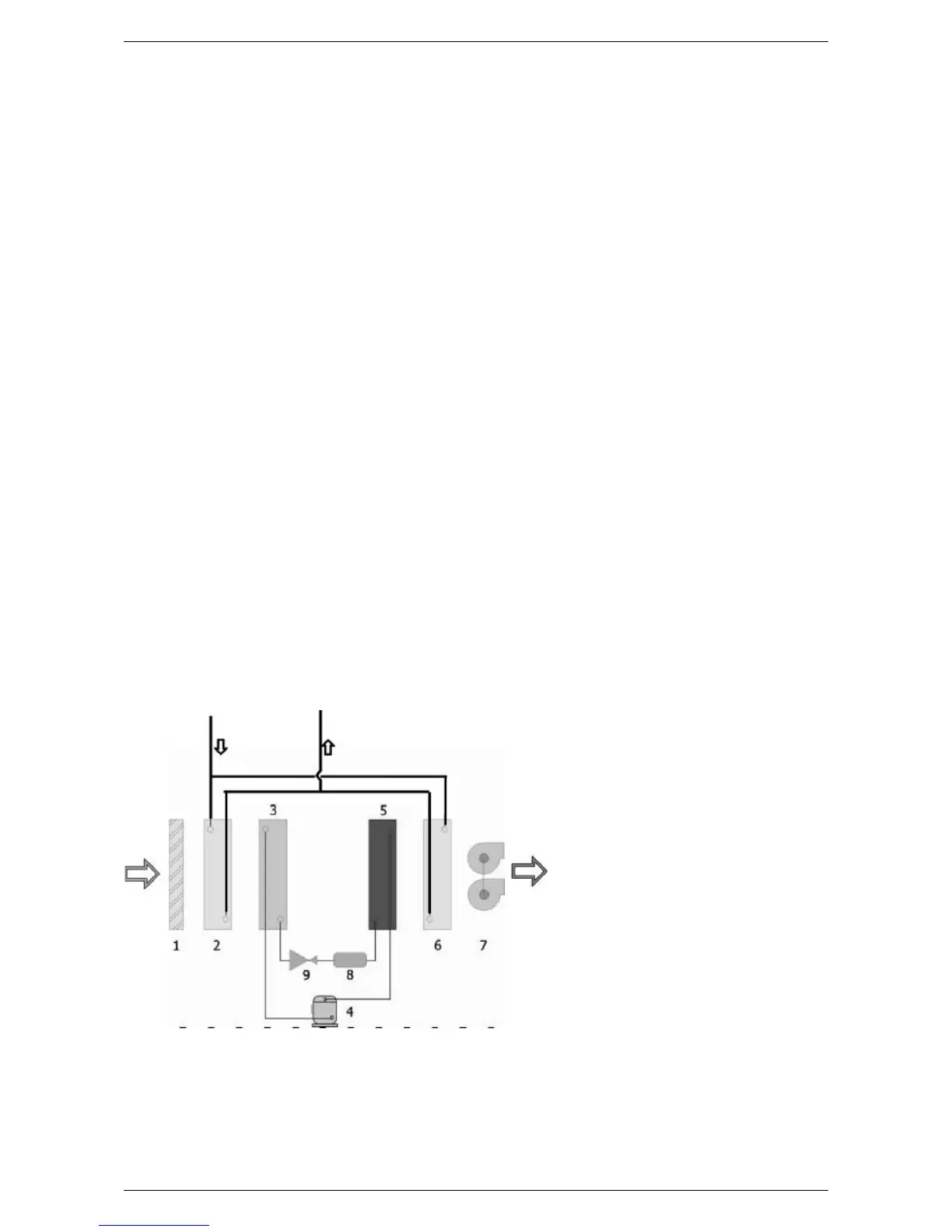 diante el ventilador (7), pasa a través del filtro precargado electrostáticamente (1) y de las dos baterías de agua (2) y (6) donde