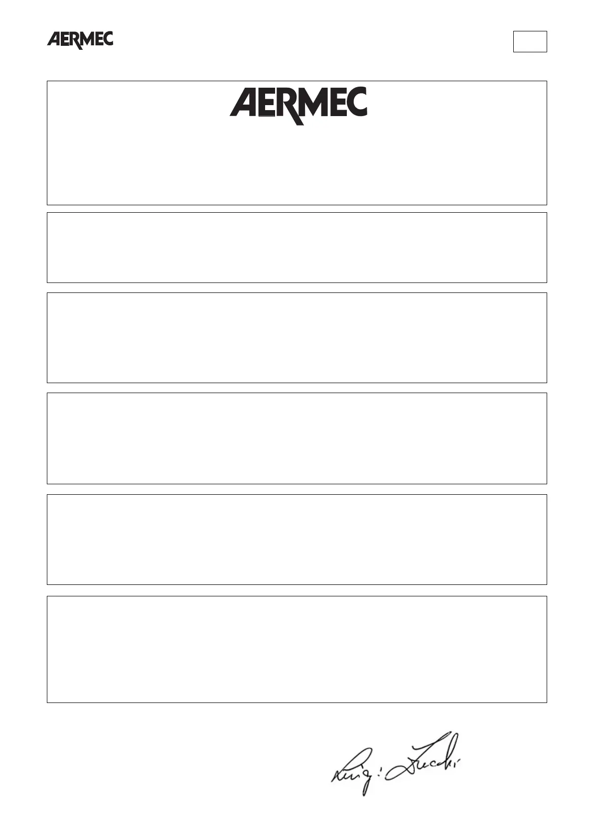 werden. Nachstehende Bescheinigung ist nur dann gültig, wenn AERMEC-Innen- und Außenheit gemäß der Einbauanleitung